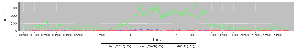 Host zm08.stanford.edu: Mailboxd: Response Time by Client Protocol
