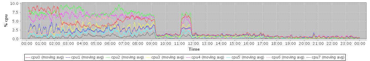 avg(cpu0) = 0.09 avg(cpu1) = 0.23 avg(cpu2) = 0.03 avg(cpu3) = 0.05 avg(cpu4) = 0.03 avg(cpu5) = 0.04 avg(cpu6) = 0.01 avg(cpu7) = 0.02