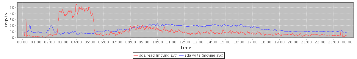avg(sda read) = 11.70 avg(sda write) = 14.07