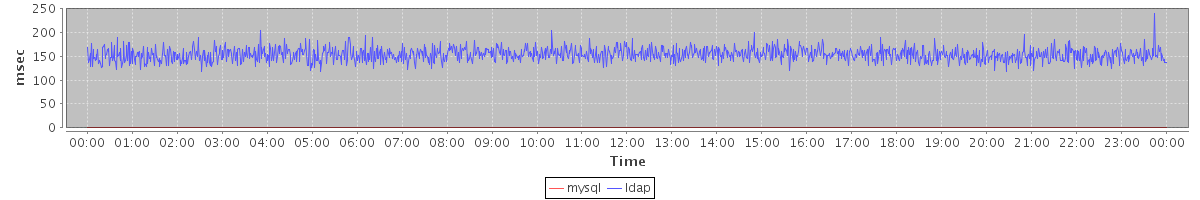 avg(mysql) = 0.15 avg(ldap) = 153.73