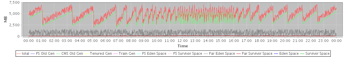 avg(total) = 4977.47 avg(PS Old Gen) = 0.00 avg(CMS Old Gen) = 4053.31 avg(Tenured Gen) = 0.00 avg(Train Gen) = 0.00 avg(PS Eden Space) = 0.00 avg(PS Survivor Space) = 0.00 avg(Par Eden Space) = 821.38 avg(Par Survivor Space) = 102.79 avg(Eden Space) = 0.00 avg(Survivor Space) = 0.00