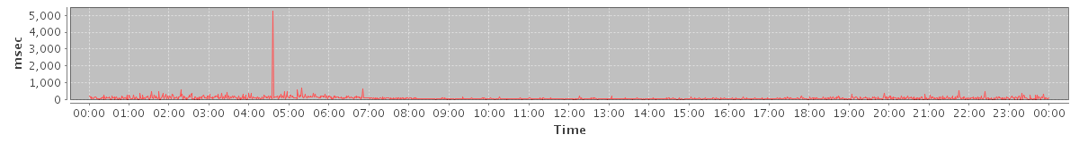 avg(ModifyIdentityRequest) = 529.00 avg(DeleteAccountRequest) = 17613.50 avg(BackupQueryRequest) = 510.20 avg(GetFreeBusyRequest) = 635.18 avg(CreateAppointmentExceptionRequest) = 367.20 avg(SendInviteReplyRequest) = 520.72 avg(AutoCompleteRequest) = 355.70 avg(ApplyFilterRulesRequest) = 2724.00 avg(FolderActionRequest.empty) = 691.03 avg(GetQuotaUsageRequest) = 1505.00