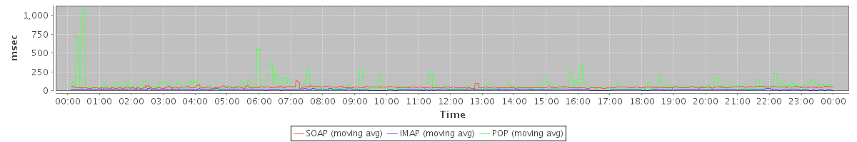 Host zm08.stanford.edu: Mailboxd: Response Time by Client Protocol