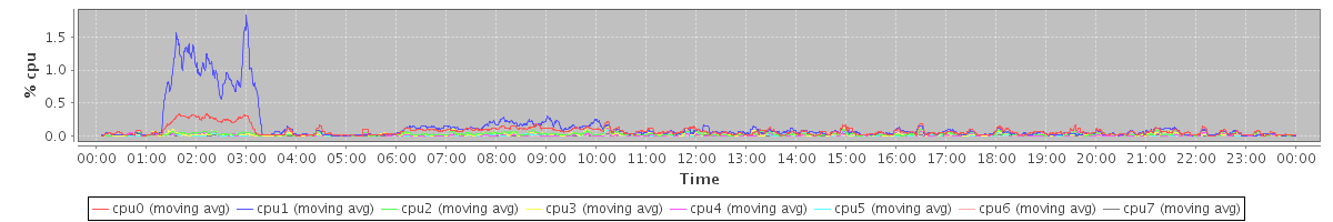 avg(cpu0) = 0.07 avg(cpu1) = 0.14 avg(cpu2) = 0.02 avg(cpu3) = 0.02 avg(cpu4) = 0.01 avg(cpu5) = 0.01 avg(cpu6) = 0.00 avg(cpu7) = 0.00