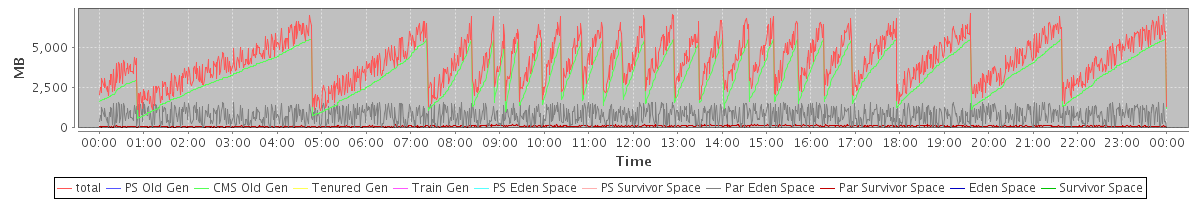 avg(total) = 4195.29 avg(PS Old Gen) = 0.00 avg(CMS Old Gen) = 3302.98 avg(Tenured Gen) = 0.00 avg(Train Gen) = 0.00 avg(PS Eden Space) = 0.00 avg(PS Survivor Space) = 0.00 avg(Par Eden Space) = 790.44 avg(Par Survivor Space) = 101.87 avg(Eden Space) = 0.00 avg(Survivor Space) = 0.00
