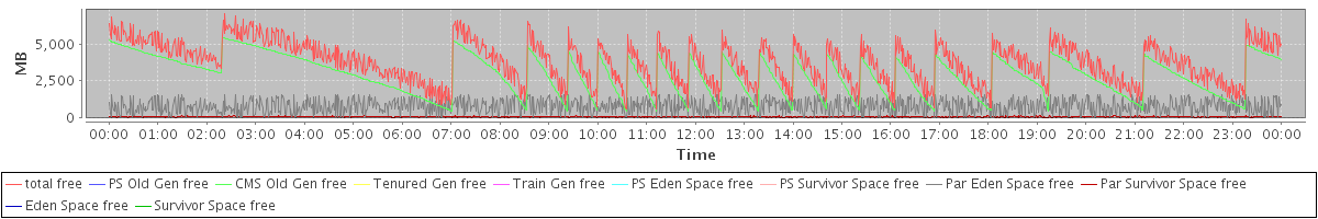 avg(total free) = 3772.70 avg(PS Old Gen free) = 0.00 avg(CMS Old Gen free) = 2882.27 avg(Tenured Gen free) = 0.00 avg(Train Gen free) = 0.00 avg(PS Eden Space free) = 0.00 avg(PS Survivor Space free) = 0.00 avg(Par Eden Space free) = 800.36 avg(Par Survivor Space free) = 90.07 avg(Eden Space free) = 0.00 avg(Survivor Space free) = 0.00