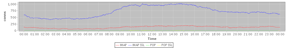 avg(IMAP) = 128.35 avg(IMAP SSL) = 717.30 avg(POP) = 0.13 avg(POP SSL) = 2.65