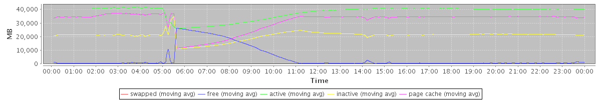 avg(swapped) = 6.63 avg(free) = 4094.72 avg(active) = 37911.61 avg(inactive) = 20713.99 avg(page cache) = 31675.08