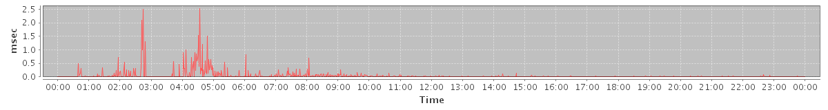 max(MsgActionRequest.move) = 698.00 max(SearchRequest) = 171.00 max(MsgActionRequest.delete) = 727.00 max(NoOpRequest) = 188.00 max(GetDomainInfoRequest) = 193.00 max(GetFolderRequest) = 832.00 max(SyncRequest) = 713.00 max(GetEffectiveFolderPermsRequest) = 128.00 max(GetAppointmentRequest) = 1306.00 max(CreateContactRequest) = 160.00