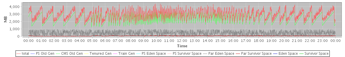 avg(total) = 2951.51 avg(PS Old Gen) = 0.00 avg(CMS Old Gen) = 2404.55 avg(Tenured Gen) = 0.00 avg(Train Gen) = 0.00 avg(PS Eden Space) = 0.00 avg(PS Survivor Space) = 0.00 avg(Par Eden Space) = 477.80 avg(Par Survivor Space) = 69.16 avg(Eden Space) = 0.00 avg(Survivor Space) = 0.00
