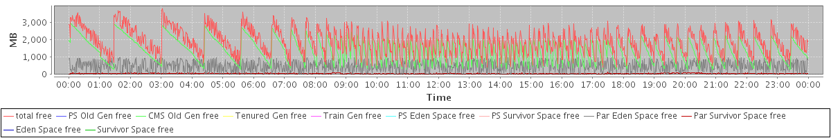 avg(total free) = 1897.52 avg(PS Old Gen free) = 0.00 avg(CMS Old Gen free) = 1374.35 avg(Tenured Gen free) = 0.00 avg(Train Gen free) = 0.00 avg(PS Eden Space free) = 0.00 avg(PS Survivor Space free) = 0.00 avg(Par Eden Space free) = 477.84 avg(Par Survivor Space free) = 45.34 avg(Eden Space free) = 0.00 avg(Survivor Space free) = 0.00