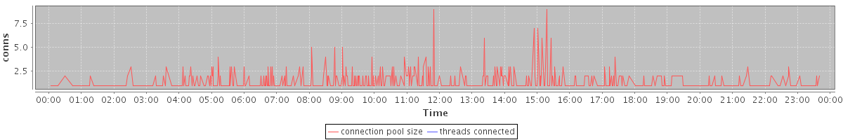 avg(connection pool size) = 0.61 avg(threads connected) = 0.00