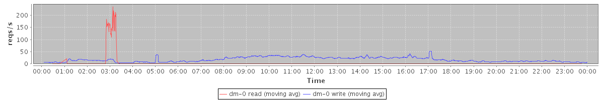 avg(dm-0 read) = 3.11 avg(dm-0 write) = 17.50