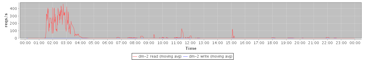 avg(dm-2 read) = 16.07 avg(dm-2 write) = 0.88