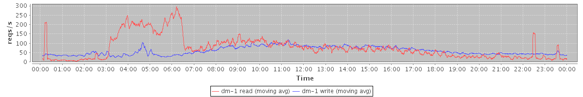 avg(dm-1 read) = 75.87 avg(dm-1 write) = 59.55