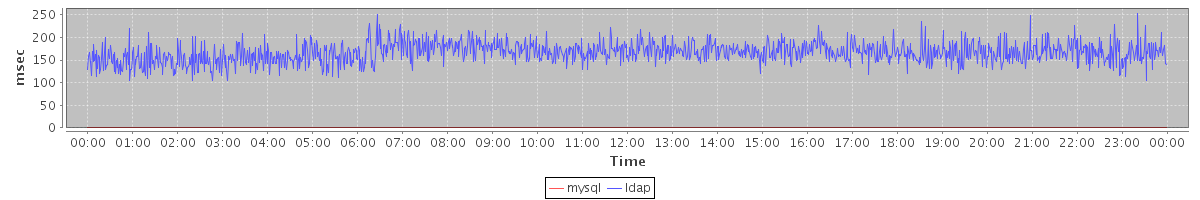 avg(mysql) = 0.14 avg(ldap) = 166.24