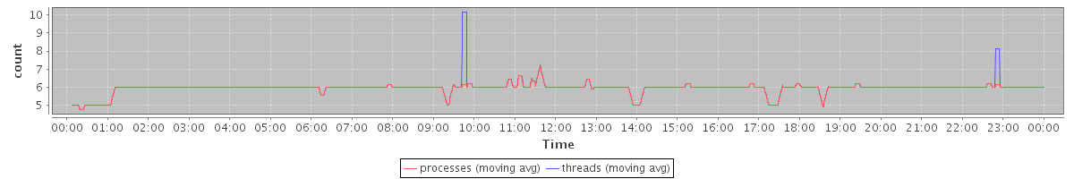 avg(tripwire) = 2067.00 avg(updatedb) = 24.65 avg(java) = 2647.31 avg(gzip) = 2223.62 avg(puppetd) = 11.62 avg(mysqld) = 317.10 avg(perl) = 17.54 avg(mysqldump) = 126.64 avg(horsewatcher-fe) = 15.55 avg(zmcompresslogs) = 963.75