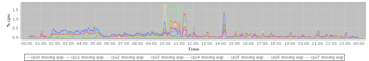 avg(cpu0) = 0.12 avg(cpu1) = 0.15 avg(cpu2) = 0.11 avg(cpu3) = 0.08 avg(cpu4) = 0.07 avg(cpu5) = 0.07 avg(cpu6) = 0.03 avg(cpu7) = 0.02