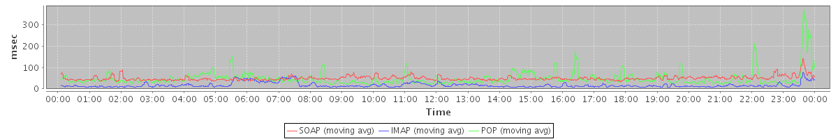 avg(SOAP) = 7.44 avg(IMAP) = 43.76 avg(POP) = 2.64