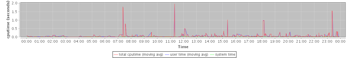 avg(total cputime) = 0.02 avg(user time) = 0.01 avg(system time) = 0.00