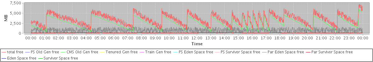 avg(total free) = 3516.25 avg(PS Old Gen free) = 0.00 avg(CMS Old Gen free) = 2596.37 avg(Tenured Gen free) = 0.00 avg(Train Gen free) = 0.00 avg(PS Eden Space free) = 0.00 avg(PS Survivor Space free) = 0.00 avg(Par Eden Space free) = 801.37 avg(Par Survivor Space free) = 118.52 avg(Eden Space free) = 0.00 avg(Survivor Space free) = 0.00