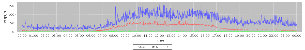 Host zm04.stanford.edu: Mailboxd: Request Rate by Client Protocol