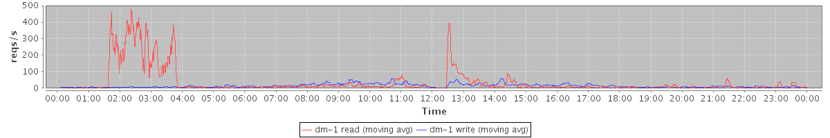 avg(dm-1 read) = 34.50 avg(dm-1 write) = 13.93