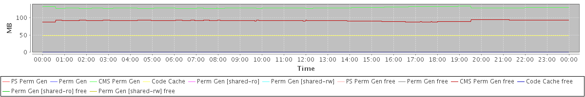avg(PS Perm Gen) = 0.00 avg(Perm Gen) = 0.00 avg(CMS Perm Gen) = 128.80 avg(Code Cache) = 47.55 avg(Perm Gen [shared-ro]) = 0.00 avg(Perm Gen [shared-rw]) = 0.00 avg(PS Perm Gen free) = 0.00 avg(Perm Gen free) = 0.00 avg(CMS Perm Gen free) = 91.42 avg(Code Cache free) = 0.45 avg(Perm Gen [shared-ro] free) = 0.00 avg(Perm Gen [shared-rw] free) = 0.00