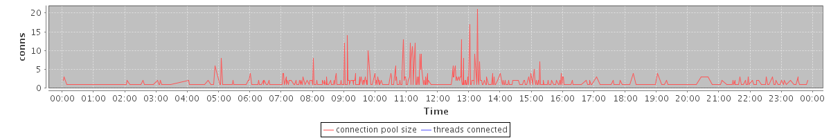 avg(connection pool size) = 0.73 avg(threads connected) = 0.00