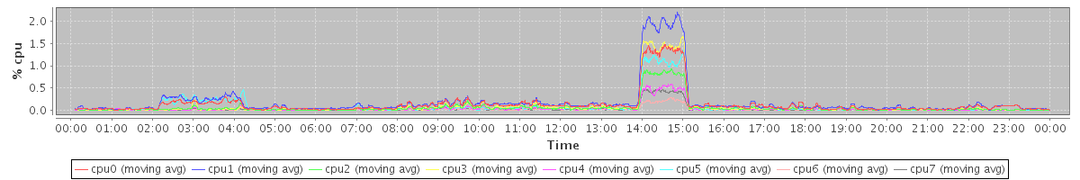 avg(cpu0) = 0.14 avg(cpu1) = 0.15 avg(cpu2) = 0.03 avg(cpu3) = 0.04 avg(cpu4) = 0.02 avg(cpu5) = 0.02 avg(cpu6) = 0.01 avg(cpu7) = 0.01