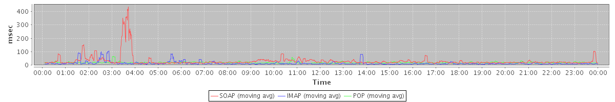 Host zm21.stanford.edu: Mailboxd: Response Time by Client Protocol