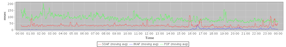 Host zm01.stanford.edu: Mailboxd: Response Time by Client Protocol