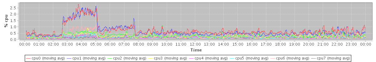 avg(cpu0) = 0.21 avg(cpu1) = 0.26 avg(cpu2) = 0.06 avg(cpu3) = 0.05 avg(cpu4) = 0.03 avg(cpu5) = 0.02 avg(cpu6) = 0.02 avg(cpu7) = 0.02
