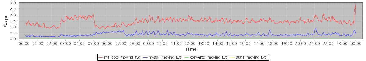 avg(mailbox) = 1.46 avg(mysql) = 0.37 avg(convertd) = 0.00 avg(stats) = 0.00