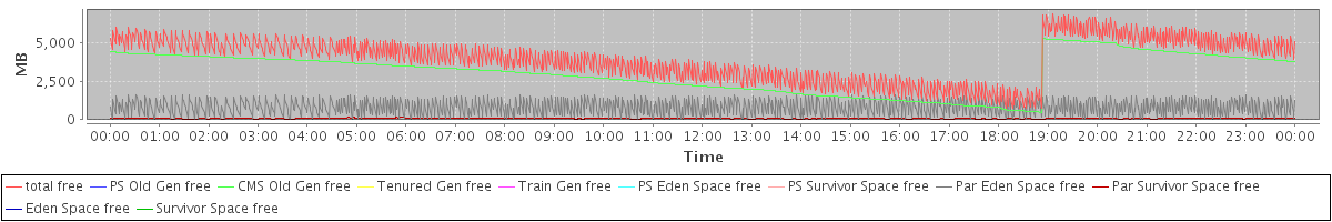 avg(total free) = 3958.80 avg(PS Old Gen free) = 0.00 avg(CMS Old Gen free) = 3071.21 avg(Tenured Gen free) = 0.00 avg(Train Gen free) = 0.00 avg(PS Eden Space free) = 0.00 avg(PS Survivor Space free) = 0.00 avg(Par Eden Space free) = 807.96 avg(Par Survivor Space free) = 79.63 avg(Eden Space free) = 0.00 avg(Survivor Space free) = 0.00