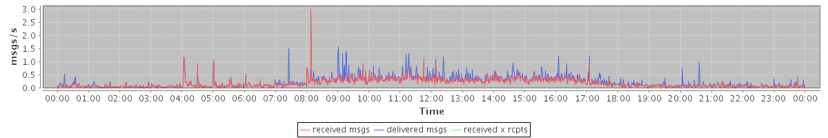 avg(received msgs) = 0.18 avg(delivered msgs) = 0.22 avg(received x rcpts) = 0.22