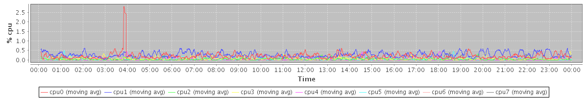 avg(cpu0) = 0.21 avg(cpu1) = 0.28 avg(cpu2) = 0.05 avg(cpu3) = 0.07 avg(cpu4) = 0.04 avg(cpu5) = 0.04 avg(cpu6) = 0.03 avg(cpu7) = 0.03