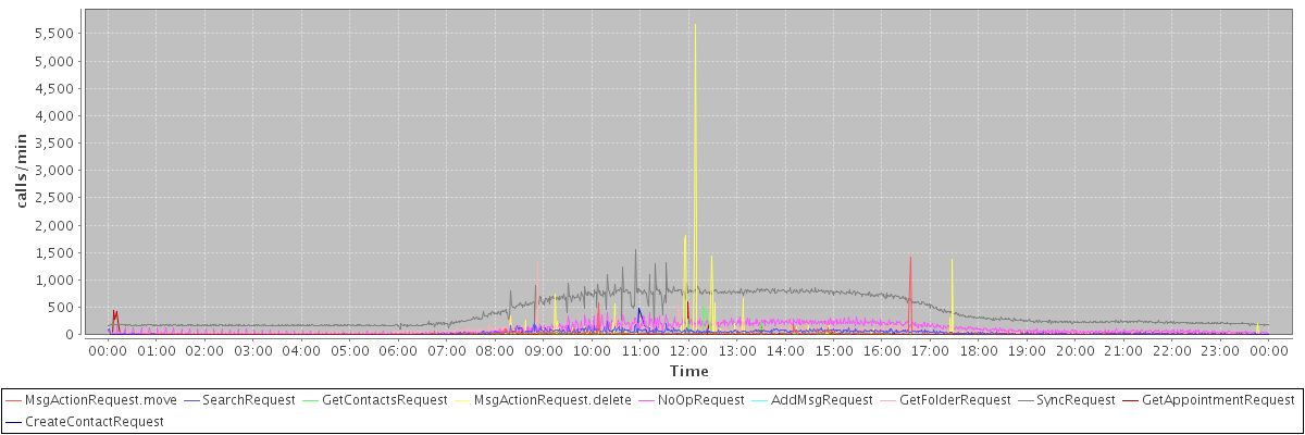 max(MsgActionRequest.move) = 1412.00 max(SearchRequest) = 240.00 max(GetContactsRequest) = 516.00 max(MsgActionRequest.delete) = 5672.00 max(NoOpRequest) = 404.00 max(AddMsgRequest) = 184.00 max(GetFolderRequest) = 1328.00 max(SyncRequest) = 1549.00 max(GetAppointmentRequest) = 611.00 max(CreateContactRequest) = 484.00
