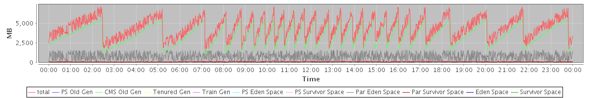 avg(total) = 4436.72 avg(PS Old Gen) = 0.00 avg(CMS Old Gen) = 3529.75 avg(Tenured Gen) = 0.00 avg(Train Gen) = 0.00 avg(PS Eden Space) = 0.00 avg(PS Survivor Space) = 0.00 avg(Par Eden Space) = 795.78 avg(Par Survivor Space) = 111.20 avg(Eden Space) = 0.00 avg(Survivor Space) = 0.00