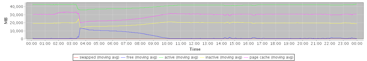 avg(swapped) = 1.98 avg(free) = 2670.02 avg(active) = 40989.70 avg(inactive) = 19130.27 avg(page cache) = 29024.08