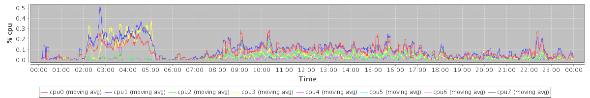 avg(cpu0) = 0.08 avg(cpu1) = 0.10 avg(cpu2) = 0.03 avg(cpu3) = 0.05 avg(cpu4) = 0.02 avg(cpu5) = 0.01 avg(cpu6) = 0.01 avg(cpu7) = 0.01