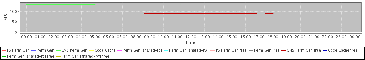 avg(PS Perm Gen) = 0.00 avg(Perm Gen) = 0.00 avg(CMS Perm Gen) = 134.55 avg(Code Cache) = 47.52 avg(Perm Gen [shared-ro]) = 0.00 avg(Perm Gen [shared-rw]) = 0.00 avg(PS Perm Gen free) = 0.00 avg(Perm Gen free) = 0.00 avg(CMS Perm Gen free) = 90.42 avg(Code Cache free) = 0.35 avg(Perm Gen [shared-ro] free) = 0.00 avg(Perm Gen [shared-rw] free) = 0.00
