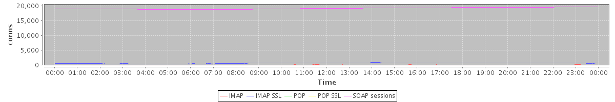 avg(IMAP) = 94.48 avg(IMAP SSL) = 660.85 avg(POP) = 0.07 avg(POP SSL) = 1.29 avg(SOAP sessions) = 19201.29
