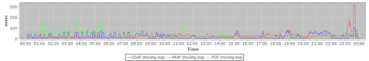avg(IMAP) = 93.58 avg(IMAP SSL) = 697.25 avg(POP) = 0.13 avg(POP SSL) = 0.60
