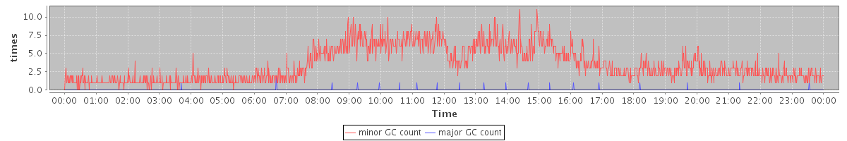 avg(minor GC count) = 3.49 avg(major GC count) = 0.01