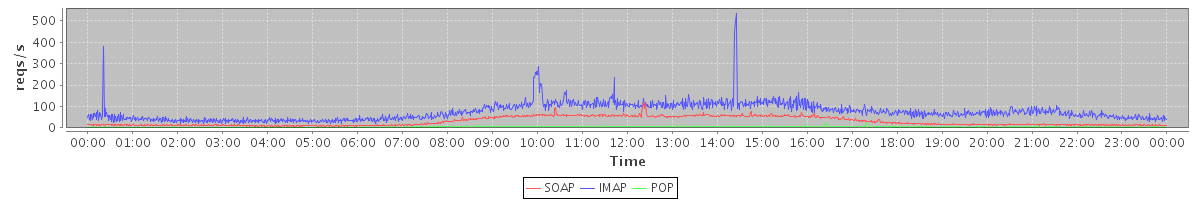 Host zm05.stanford.edu: Mailboxd: Request Rate by Client Protocol