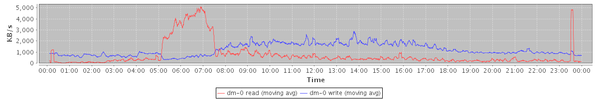 avg(dm-0 read) = 739.87 avg(dm-0 write) = 1219.17