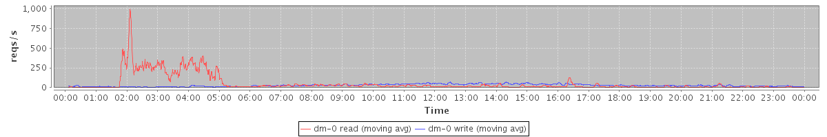 avg(dm-1 read) = 517.11 avg(dm-1 write) = 869.06