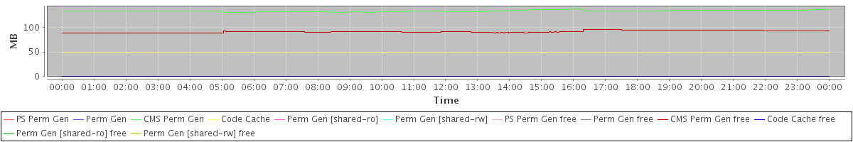 avg(PS Perm Gen) = 0.00 avg(Perm Gen) = 0.00 avg(CMS Perm Gen) = 132.71 avg(Code Cache) = 47.48 avg(Perm Gen [shared-ro]) = 0.00 avg(Perm Gen [shared-rw]) = 0.00 avg(PS Perm Gen free) = 0.00 avg(Perm Gen free) = 0.00 avg(CMS Perm Gen free) = 90.99 avg(Code Cache free) = 0.39 avg(Perm Gen [shared-ro] free) = 0.00 avg(Perm Gen [shared-rw] free) = 0.00