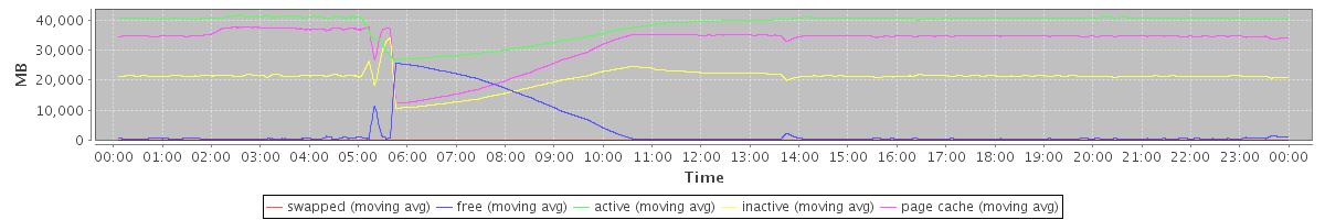 avg(swapped) = 9.69 avg(free) = 3630.70 avg(active) = 38301.40 avg(inactive) = 20748.32 avg(page cache) = 32379.47